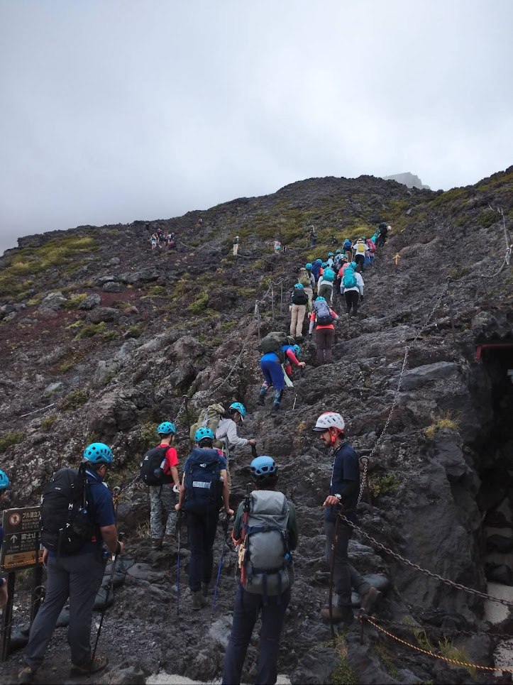 2日目は朝4時30分に起床!みんなで力強いご来光を見てから登山開始です。崖のような岩場をいくつもこえて登り始めて10時間!!ひと家族だけ六合目で別行動となりましたが、残るメンバーは全員が本八合目に到達しました!!ほとんどの家族は登山経験がありませんでしたが、1か月前からみんなでウォーキングと筑波山練習会を開催。練習の成果が出ました!