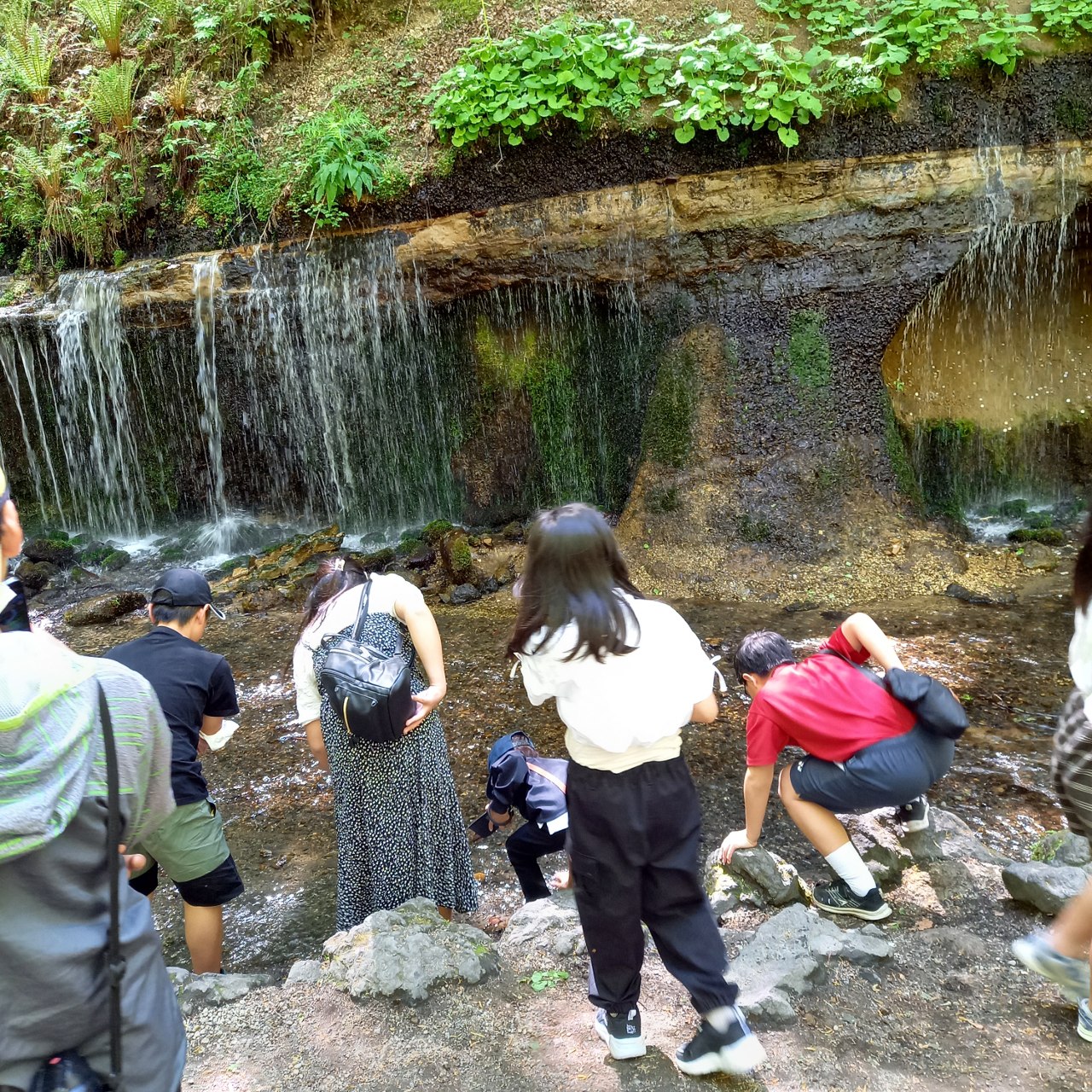 ショッピングや食べ歩きの次は山の方へ向かい白糸の滝へ。マイナスイオンを一杯浴びて、天然温泉の“とんぼの湯”で汗を流しました♪“初めての温泉”というお子さんも多かったですが、事前に温泉の入り方を勉強していたため入り方・マナーも問題なし!広い露天風呂でははしゃぎたい気持ちを抑えてじっくり温泉・サウナを楽しんでいました。