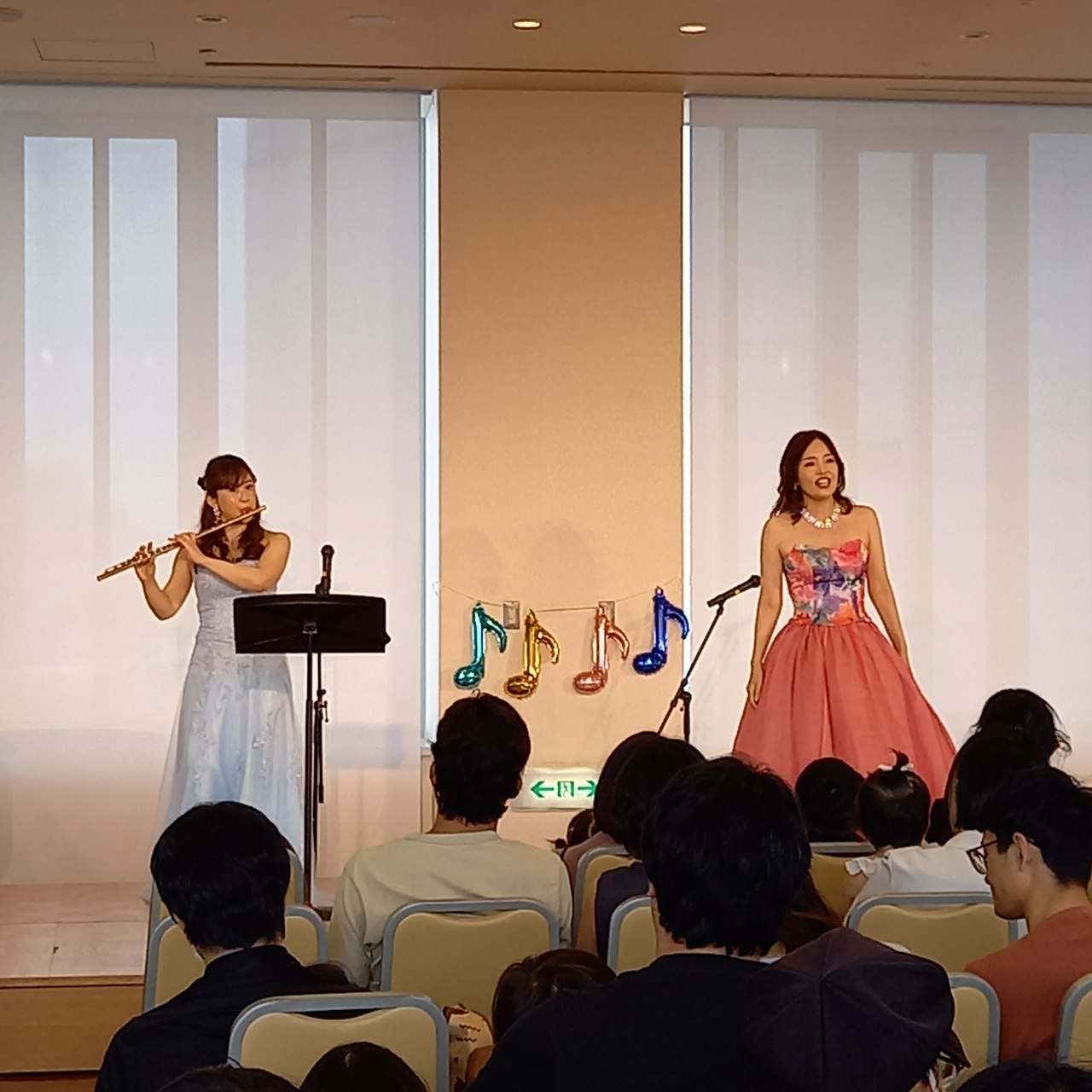 今回はフルート奏者の真鍋知子さんとピアノ奏者の古川貴子さん、そしてソプラノ歌手の天野聡絵さんの3名による演奏会で、はじめはフルートとピアノのお二人で演奏を開始し、途中からソプラノの天野さんが登場する演出♪天野さんの美しく・大きな歌声に子ども達もビックリしていましたが、泣き出す子はほとんどいなくて、一緒にとなりのトトロ・さんぽなど歌って楽しそうにしていました♪