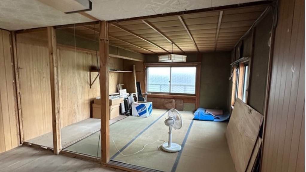 この度、皆様のお陰様で、まちまちCAFE2階の空き部屋の改修工事を今週から着工いたしました。【壁の撤去/天井の補修/畳の張り替え/ 空調設備の導入】以上が工事内容です。