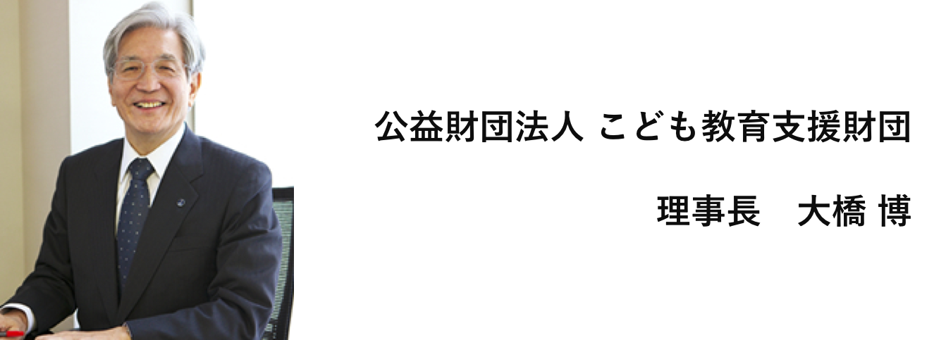 公益財団法人こども教育支援財団は、未来社会を担うかけがえのないこどもたちの現状や今後のあるべき姿をさまざまな角度から調査・研究し、家庭教育や地域における多様な学習活動の支援を図り、子どもの健全な育成、生きる力を育むことを目的として設立されました。