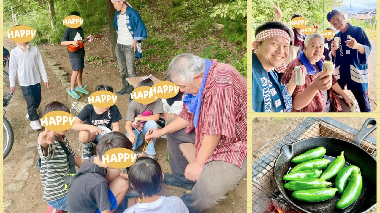 お餅と収穫したピー太郎🫑を引っさげて、プレーパークの七輪で焼いていると、こども達が沢山集まってきます✨😊