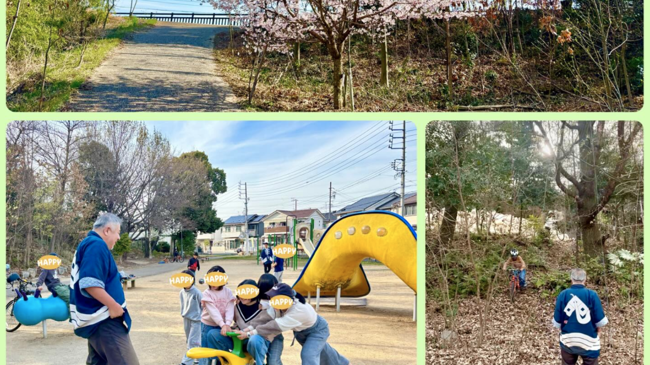 岩崎山の遊歩道の坂道を利用して、自転車・キックボード・スケボー等等の乗り物で滑走する遊びが流行ってます❗️かなり刺激的😁