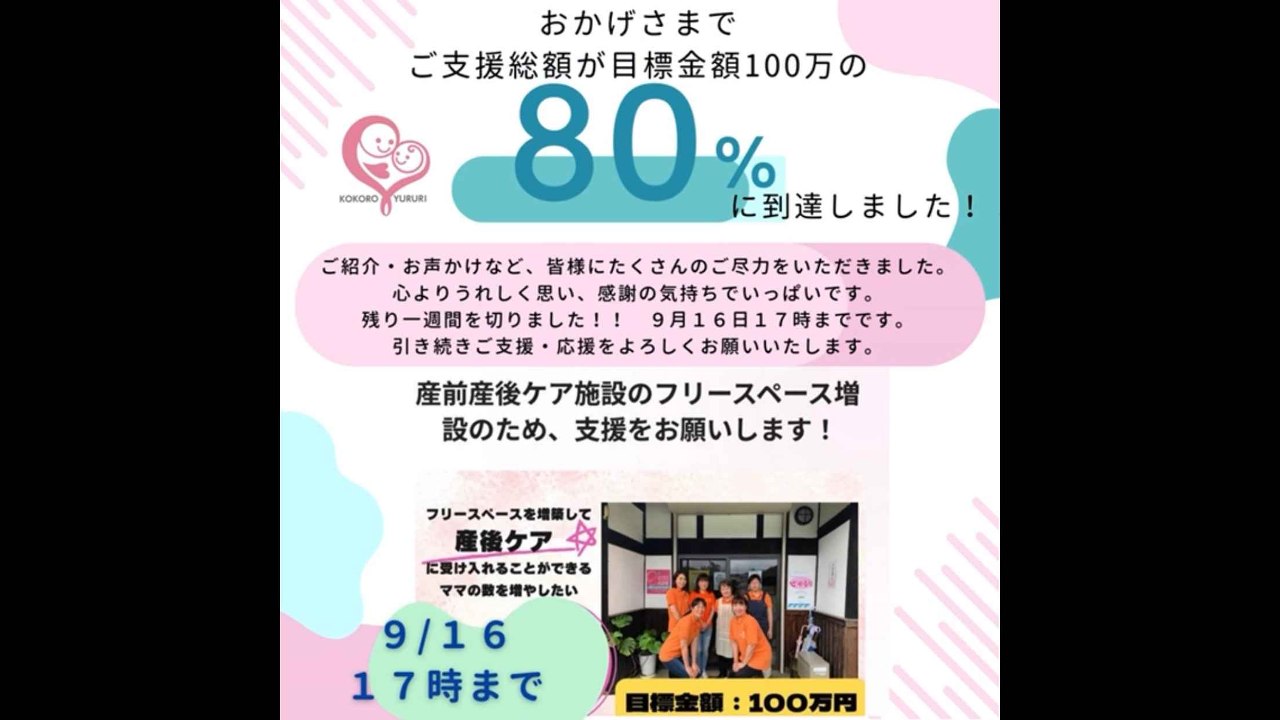 産前産後ケア施設のフリースペース増設のため、支援をお願いします!