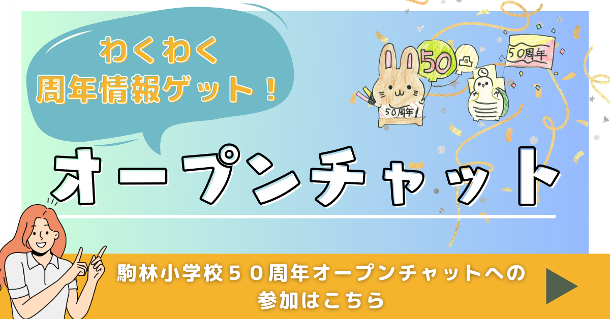 「駒林小学校50周年 オープンチャット」で随時発信しています。