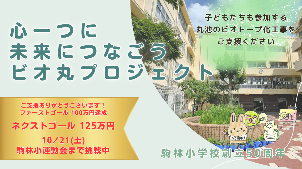 さて、『心一つに 未来につなごう ビオ丸プロジェクト』は、駒林小学校運動会が開催される 10/21(土)まで続きます。