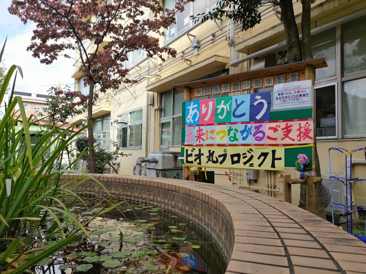 この後は、皆様のやさしい気持ちを子どもたちが受け取り、子どもたち中心に丸池をビオトープ化するプロジェクトが進んでいきます。