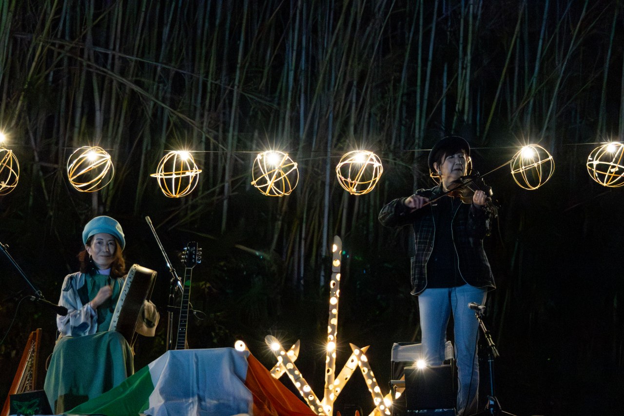 アイリッシュミュージックは、森の中で妖精に出会いそうな雰囲氣で竹灯籠まつりにピッタリなんです。