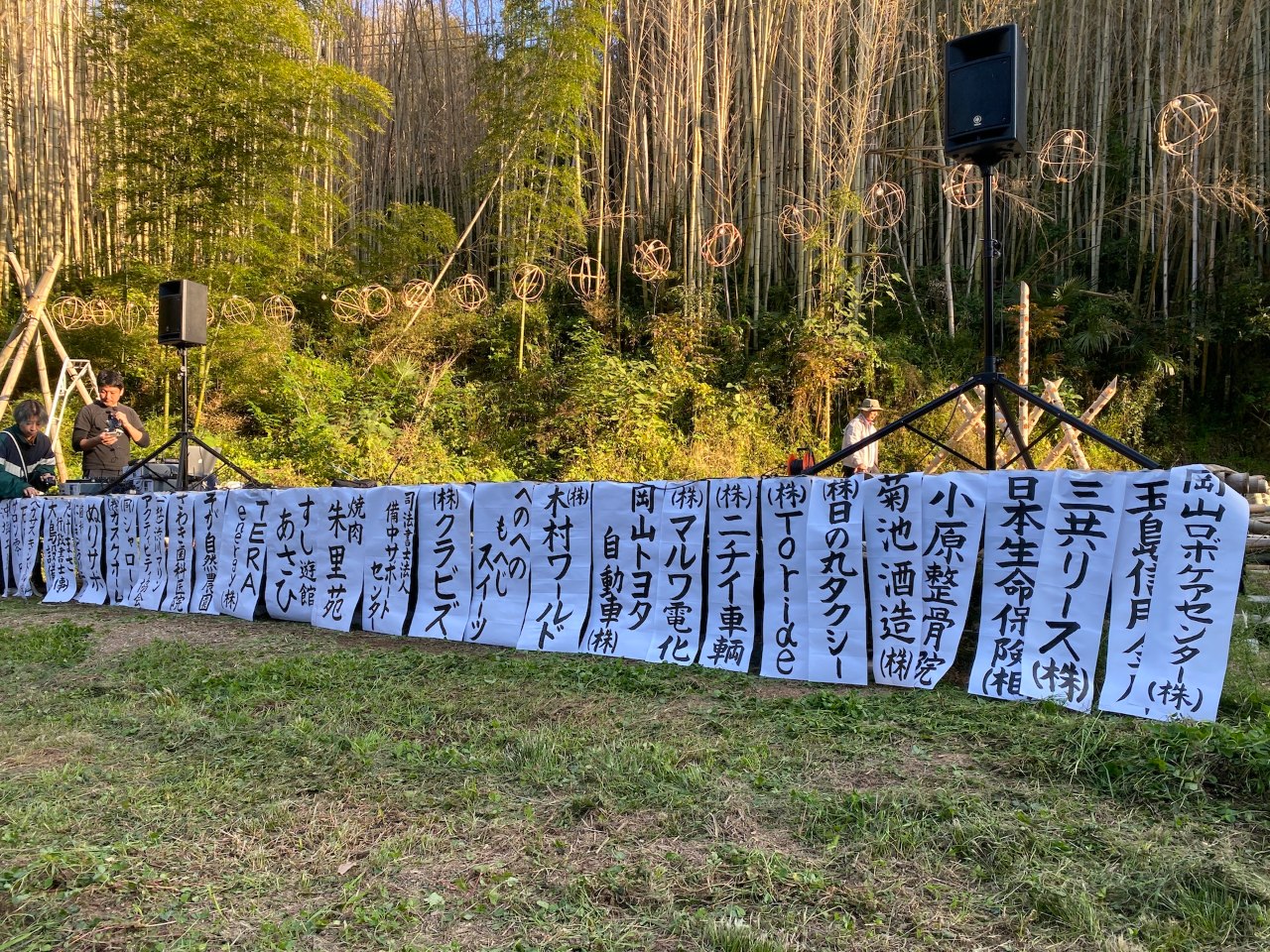 舞台には、竹灯籠まつりにご協賛をいただいた地域の企業、店舗さんのお名前を掲載させていただきました。どうもありがとうございます。