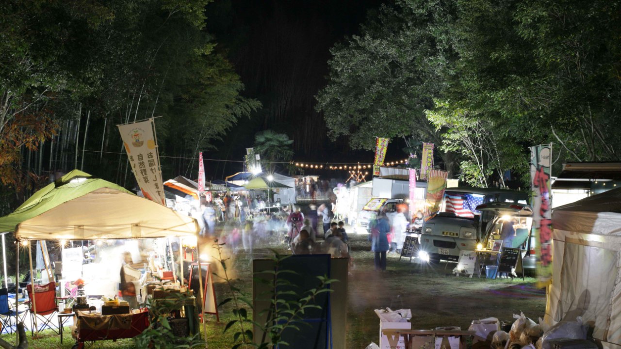 美味しい食べ物、アトラクション、ワークショップ、竹灯籠の柔らかな灯りと夜店の熱氣に子どもたちも大喜び。