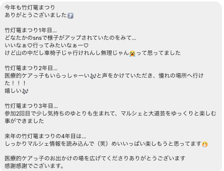 医療ケアを要するお子さんご家族の嬉しい声