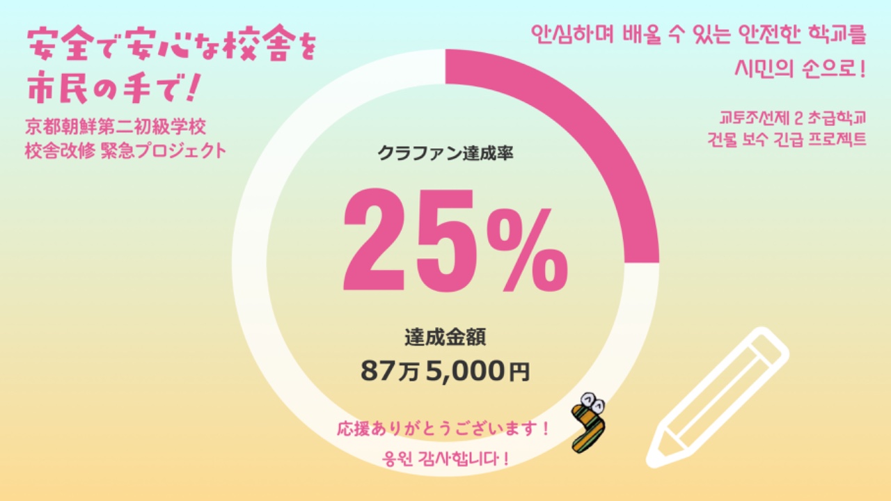 目標金額の25%に達しました!(목표금액 25% 달성했습니다!)