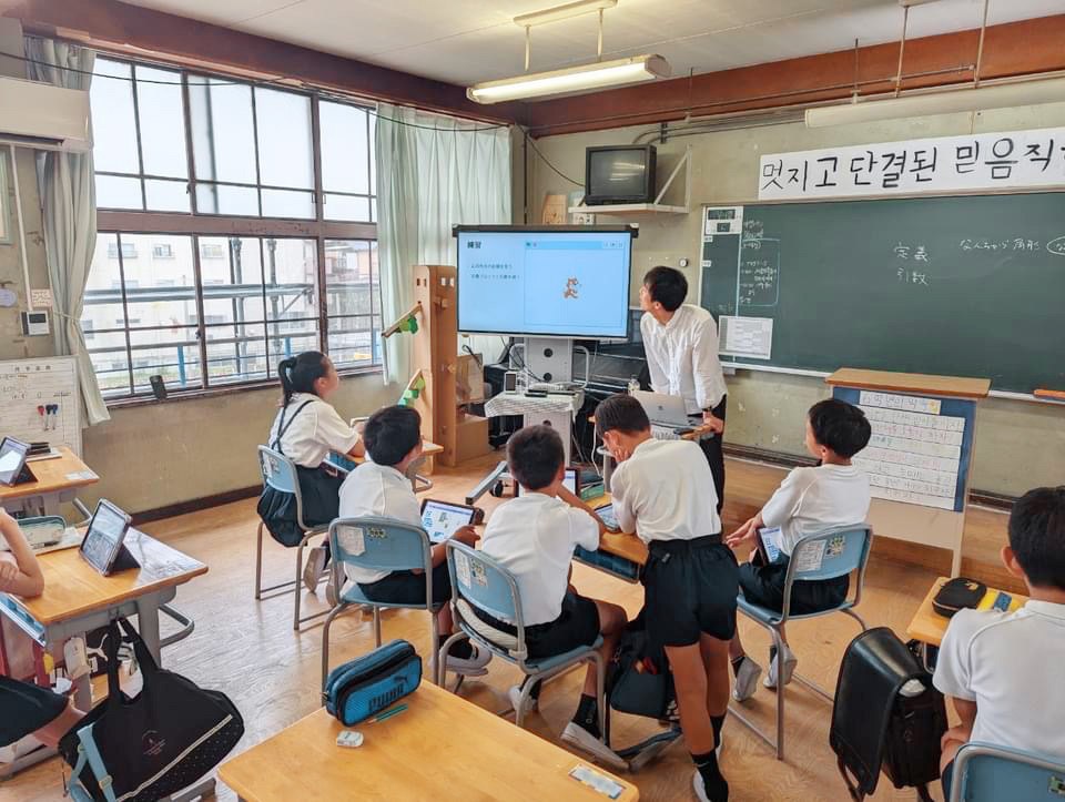 京都朝鮮第二初級学校では、4、5、6年生を対象にプログラミング授業をしています。