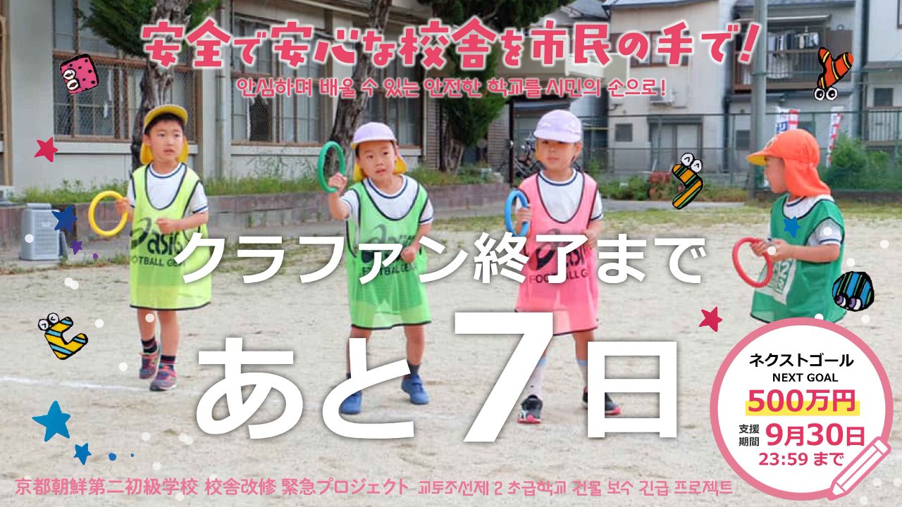 朝鮮学校の校舎改修には公的助成がなされません。老朽化で待ったなしの状況に、私たち市民も加わって工事費用を工面し、安全な校舎、こどもたちが安心して学べる環境を実現しましょう!