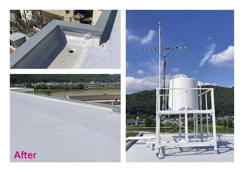 その他、鳩の侵入を防ぐ為の理科室屋根の改修と、屋上にある貯水槽の土台改修も行われました。