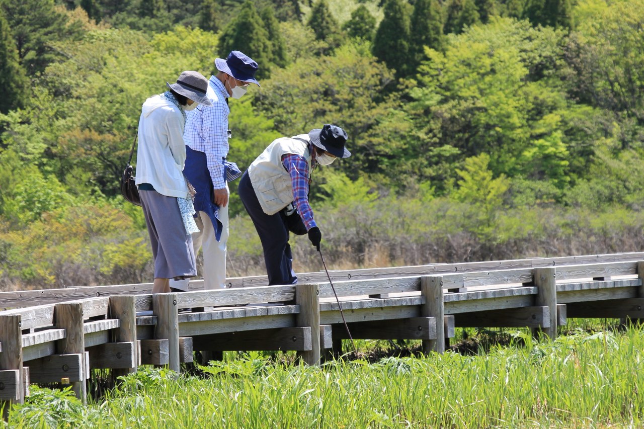 梅雨のシーズンも終盤に差し掛かってきました。タデ原湿原ではハンカイソウやノハナショウブといった花々が勢いよく咲きはじめ、高原の風が吹き抜ける緑の草原を彩っています。ヒグラシの声もよく響くようになってきました。梅雨が明けたら、いよいよくじゅうにも本格的な夏がやってきますね。