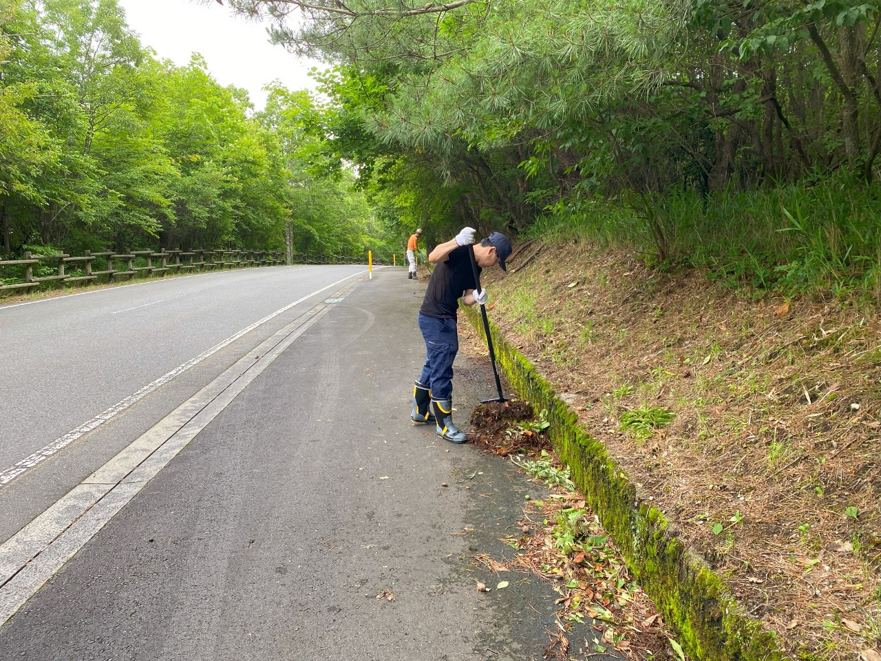 7月3日に、地元の九重・飯田高原観光協会やボランティアのみなさんから成る「公私隊」による環境整備活動が行われました。今回は長者原周辺と川端康成文学碑周りの草刈り・牧ノ戸峠~長者原までの九州自然歩道間での草刈りと泥上げの作業です。長者原地区は、夏に向けて一般の観光客やツアー団体・登山客など多くのお客様で賑わいます。訪れる方々が気持ちよく且つ安全に施設や場所の利用ができるよう、40名を超えるメンバーで作業に取り組みました。伸びきった草を刈り取ったり、積みあがった朽葉・泥を除去したことで、歩道や芝生広場が見違えるほどきれいになりました。梅雨の晴れ間で暑い中での作業となりましたが、達成感の大きい整備活動となりました。くじゅうファンクラブでは道具の貸し出しや資材提供・スタッフの派遣などを通して地域ボランティアによる自然環境保全活動を支援しています。