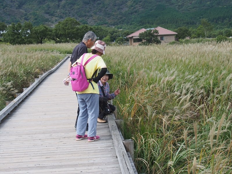 タデ原湿原では、秋の風に揺れるススキが陽の光でキラキラと輝き、美しい銀世界が広がっています。ススキのあいだをのぞくと、リンドウやヤマラッキョウなど、晩秋を彩る花が咲きはじめています。