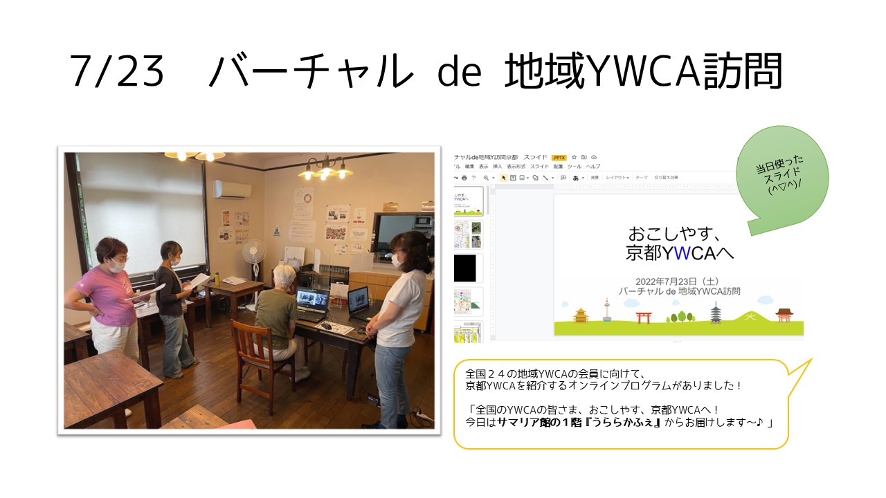 京都YWCAにはW・M・ヴォーリズが設計した歴史的建造物があります。現在築85年のこの建物は「サマリア館」と呼ばれ、京都YWCAが推進する多世代多文化ふれあいコミュニティづくりの中心的な場所となっています。