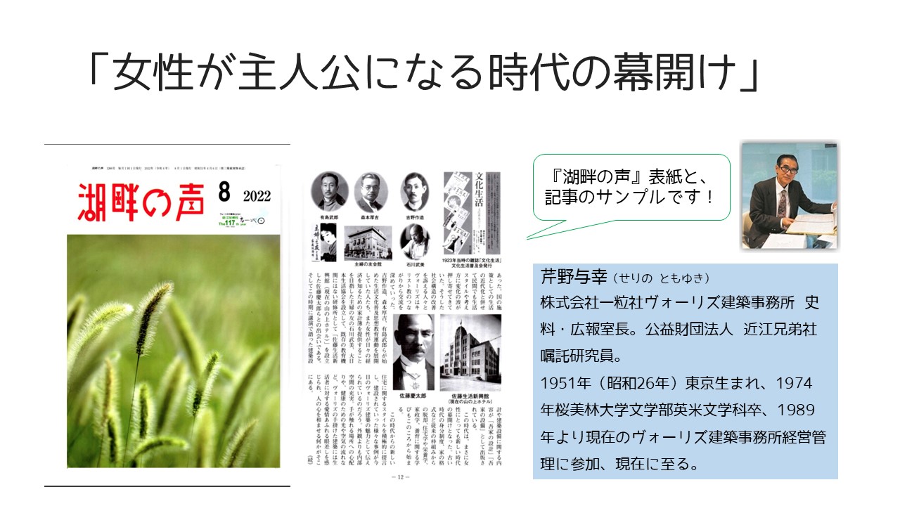 芹野氏は近江兄弟社発行の「湖畔の声」2022年8月号