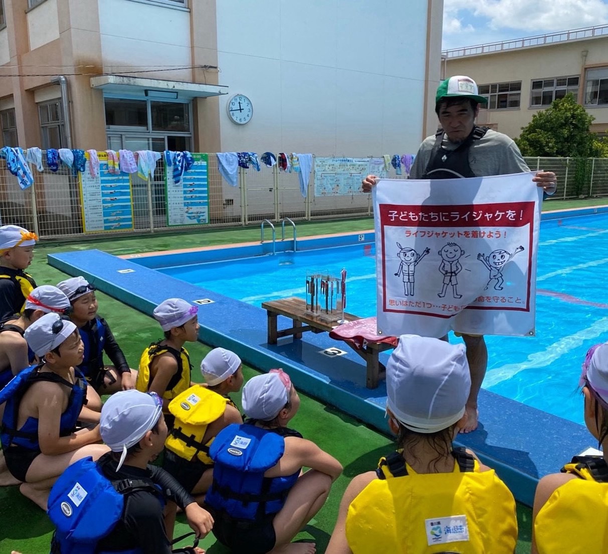 令和4年から、香川県教育委員会さんが「ライフジャケット推進事業」(令和7年度からは「学校における水難事故防止教育推進事業」)に取り組んでくださっています。県教委が「ライフジャケットレンタルステーション」を開設し、学校や園、子ども会等に貸し出しをしてくださっています。そして、学校での水泳授業での「ライフジャケット着用体験」を推進し、「香川県の子どもたちが必ず『ライフジャケット』のことを学べるようにしたい…」と熱い気持ちでがんばってくださっています。