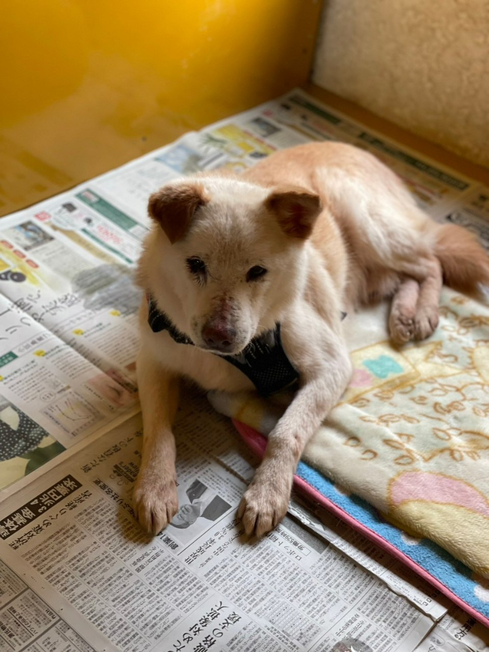12歳のオス。元野犬でなかなか譲渡が決まらず、提携団体様よりお預かりしました。白内障が進行しており、だいぶ目が見えなくなってしまっています。