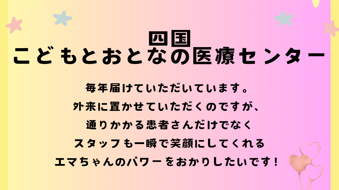 🎈【送付病院が決定しました!】🎉 12月14日(土)に東京から発送する lucaemmaバルーンのお届け先を、毎日少しずつご紹介しています🌈✨ 📍 #四国こどもとおとなの医療センター 一つひとつ心を込めて制作し、 病院で過ごす子どもたちが少しでも笑顔になれるよう、 大切に送付させていただきます🌈✨ -*-*-*-*-*-*-*-*