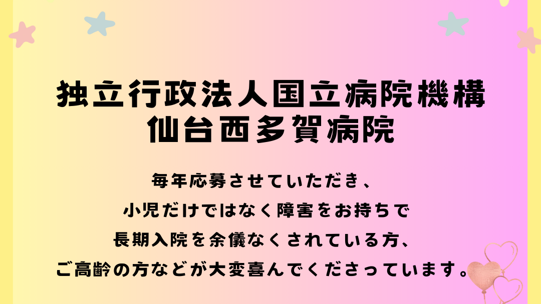 🎈【送付病院が決定しました!】🎉 12月14日(土)に東京から発送する lucaemmaバルーンのお届け先を、毎日少しずつご紹介しています🌈✨ 📍 #仙台西多賀病院 一つひとつ心を込めて制作し、 病院で過ごす子どもたちが少しでも笑顔になれるよう、 大切に送付させていただきます🌈✨ -*-*-*-*-*-*-*-*