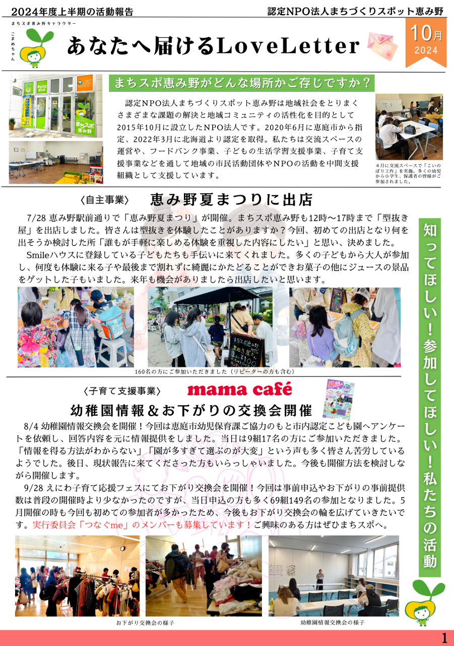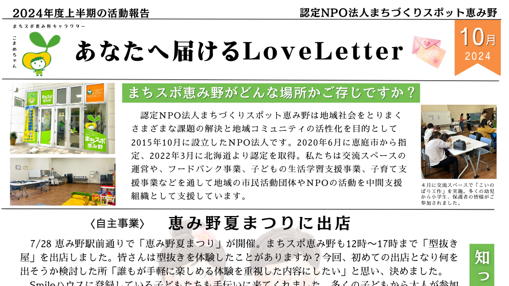 2024年度の上半期活動報告「あなたへ届けるLove Letter」です! 活動が多すぎるため、今回は主に7~8月の活動についてまとめてみました。 今回は初となる、会員様へのインタビューページもございます! 公式LINEの運用も開始したので、ぜひご登録ください!!