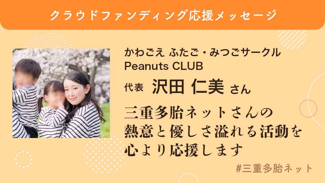 【応援メッセージ】三重多胎ネットさんの熱意と優しさ溢れる活動を、心より応援します