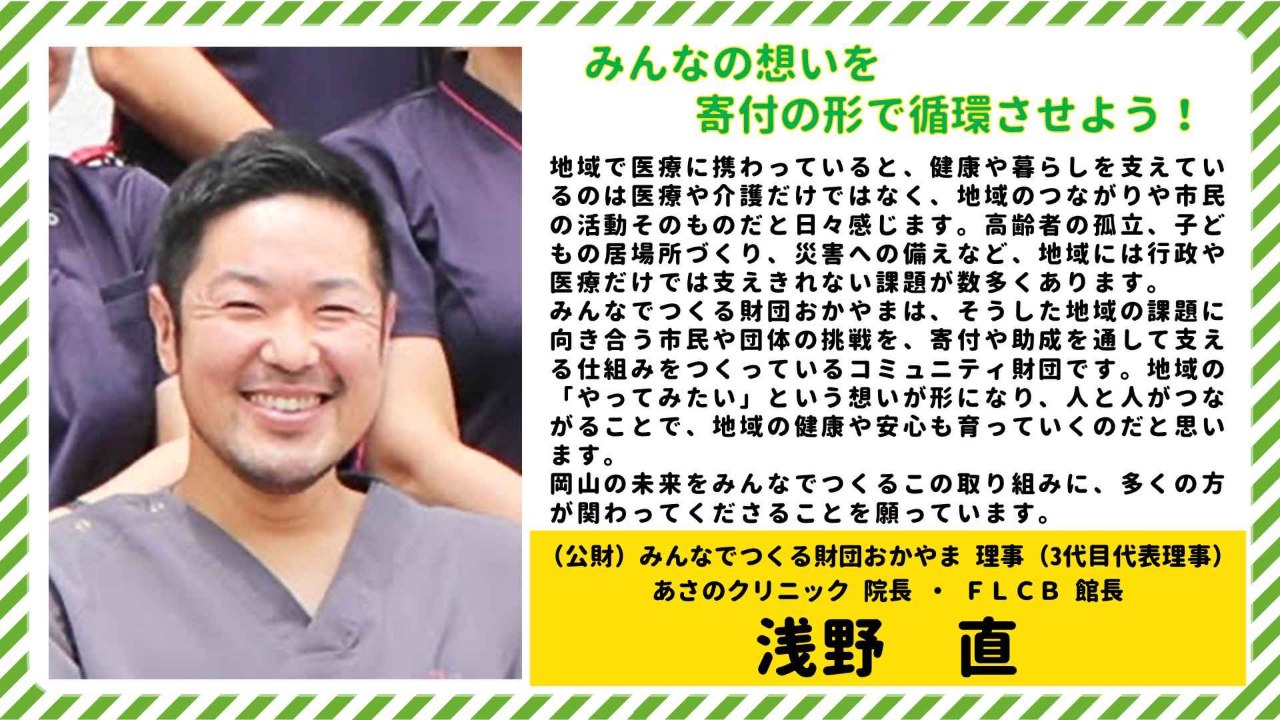 (公財)みんなでつくる財団おかやま 理事(3代目代表理事)