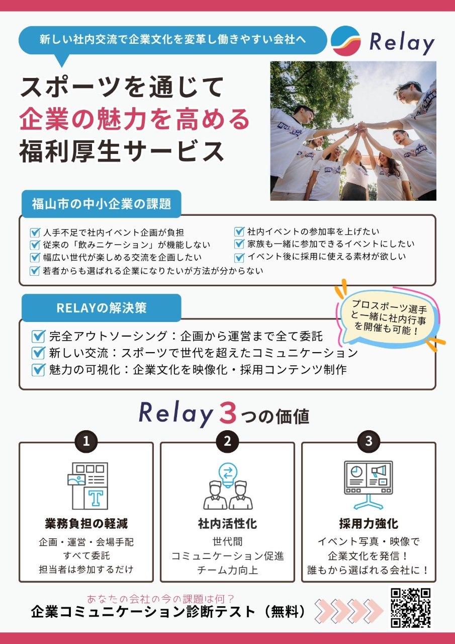 「バトンを繋ぐ」という意味を込めたRELAYは、スポーツやレクリエーションを通じて企業の魅力を最大化する革新的な福利厚生サービスです。