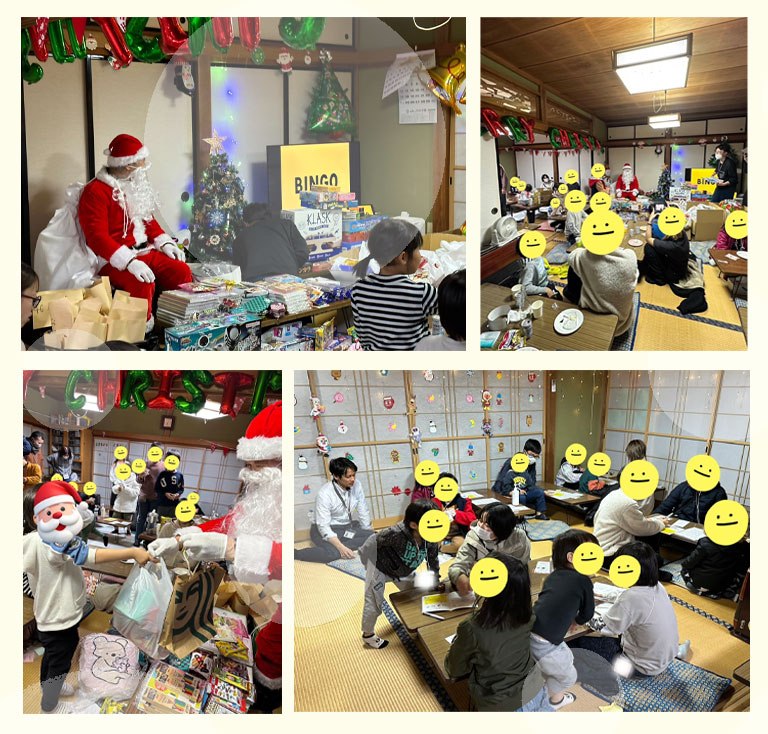クリスマス恒例のビンゴ大会では、たくさんの支援が集まり、