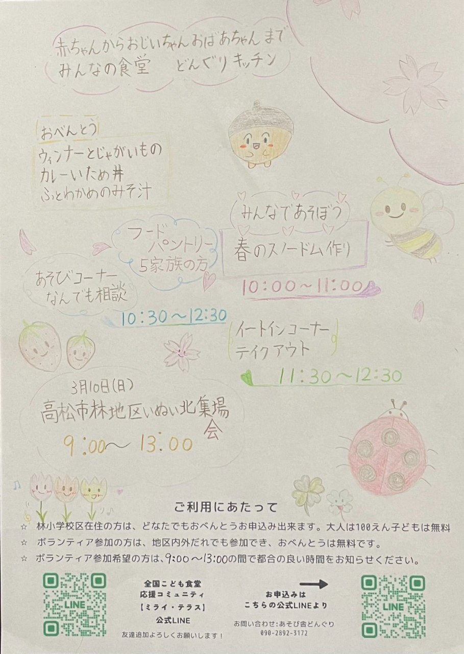 3月開催のこども食堂のチラシは、やはりご参加のお子様が作られました(^^)
