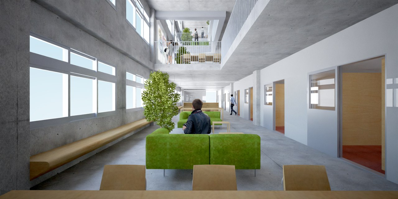 改修改築にあたり、一部屋当たりの収容を1∼3人とし、共有スペースと個人スペースを融合させて、学習ディベートや誕生会コンパなど、相互に刺激しあえる集団生活を送りながらストレスをためることのない設計を目指しています。