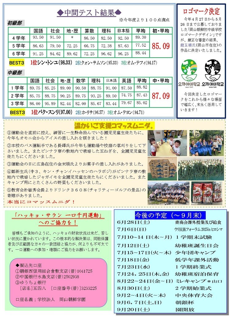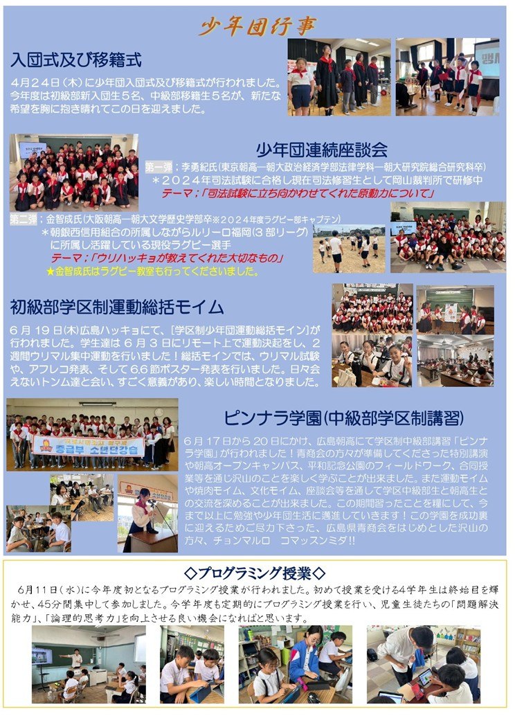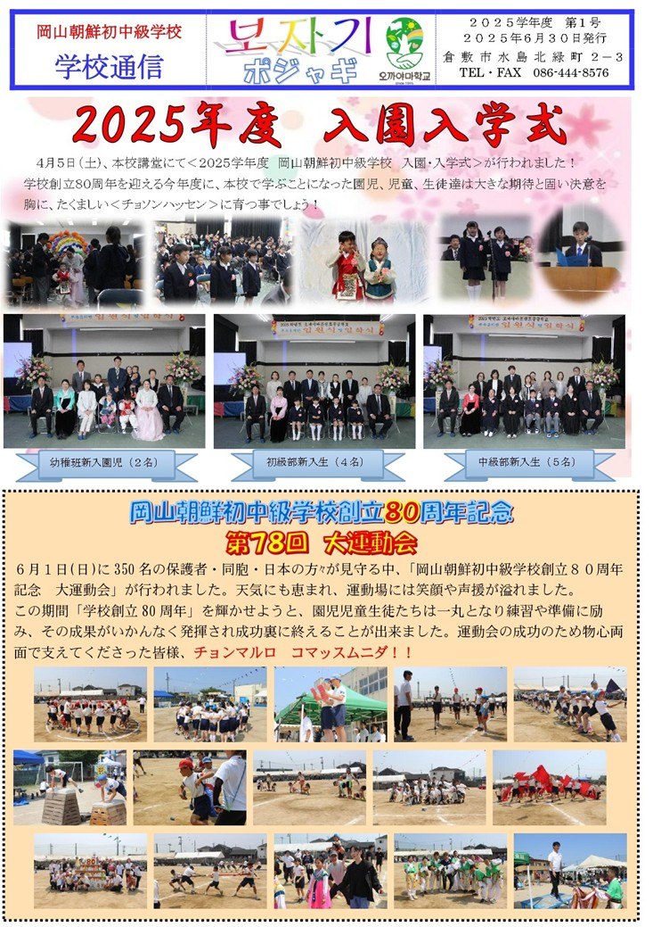 岡山朝鮮初中級学校 学校通信「ポジャギ(物や福を包み込むの意)」2025年度