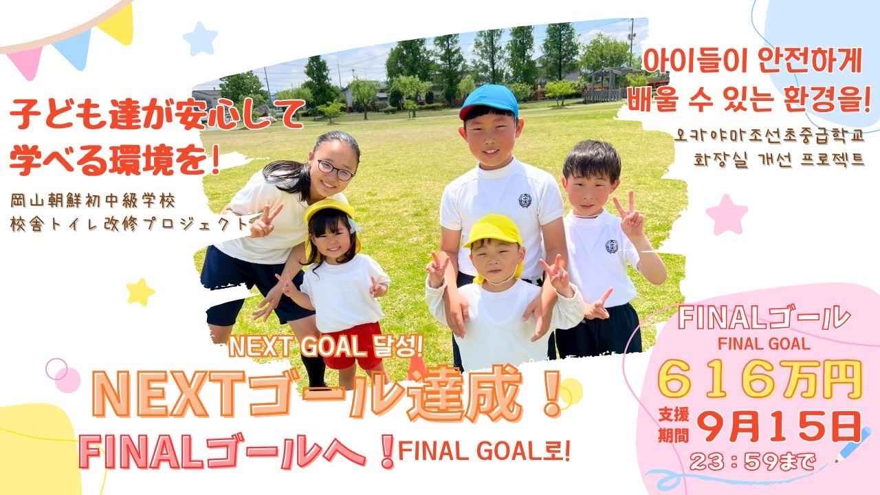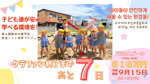 最終日の9月15日まで、「校舎1階男女トイレ改修費用」である616万円に向かって、どうぞよろしくお願い致します。