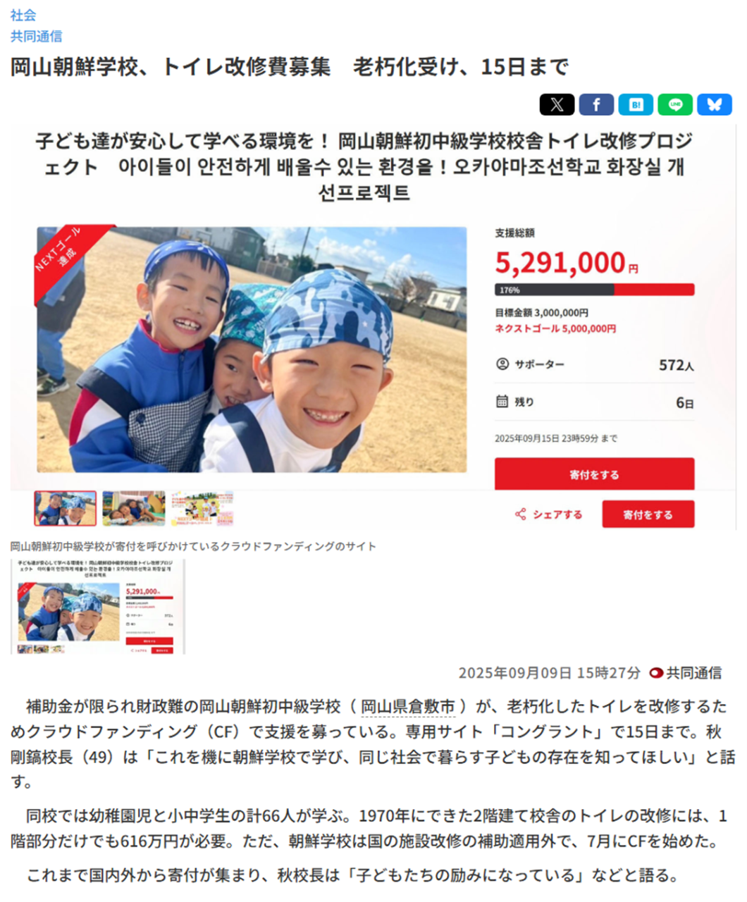 여러분 한 분 한 분의 따뜻한 지원에 진심으로 감사드립니다! 끝까지 잘 부탁드립니다! 共同通信社가 이 프로젝트를 거론하며 응원해 주셨습니다. 소개하겠습니다.