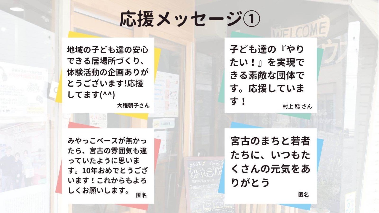 みやっこベースへの応援メッセージ紹介①