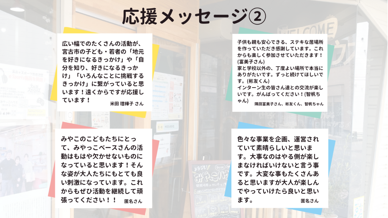 日頃より応援いただきありがとうございます。 今回は応援メッセージ紹介の第2弾です! 皆さまの温かい声が、私たちの大きな励みになっています。これからもその応援を力に活動を続けてまいります。 引き続き、温かいご支援をどうぞよろしくお願いいたします。