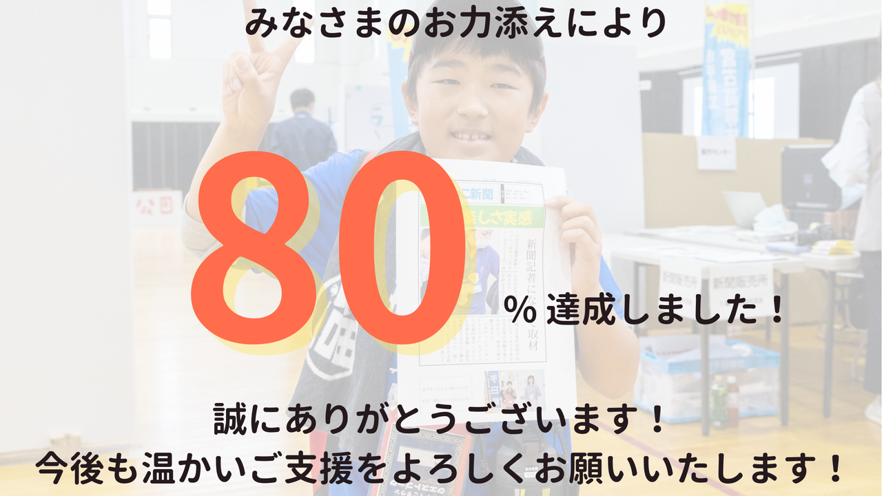 おかげさまで、目標の80%まで到達することができました!ご支援いただいた皆さま、ありがとうございます。