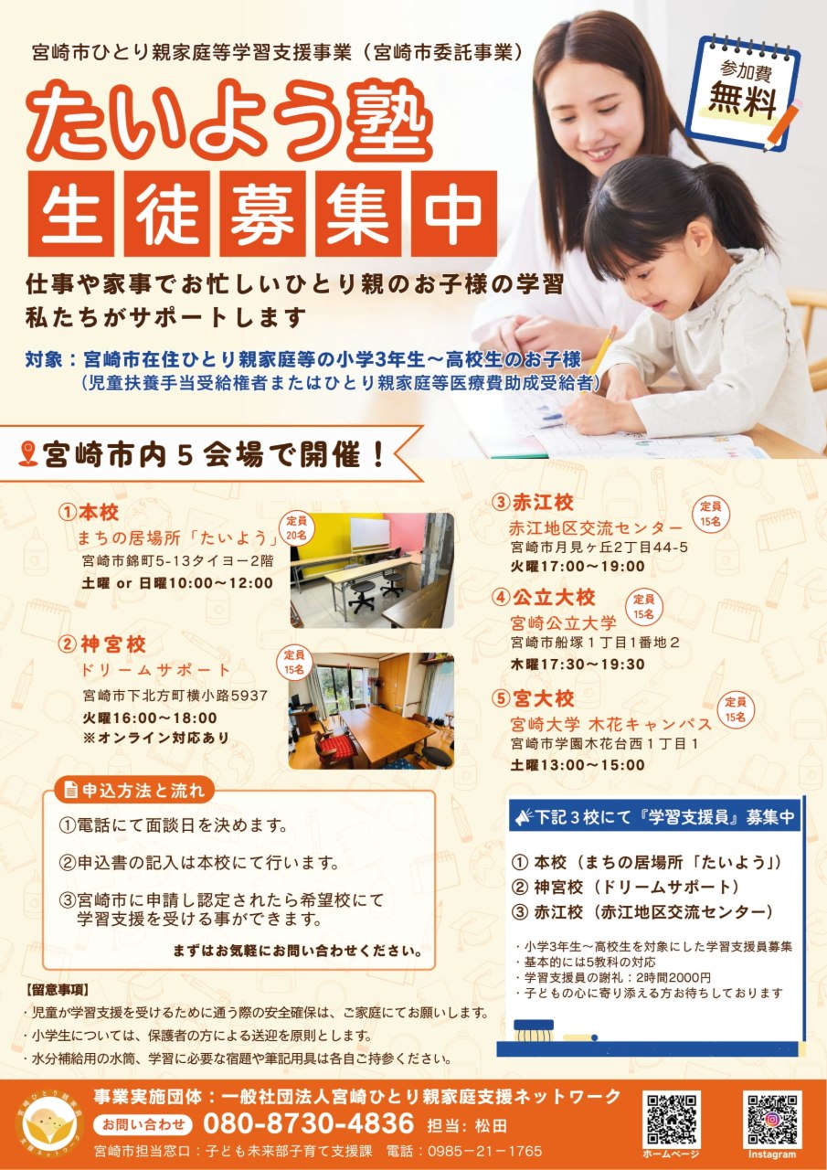 宮崎ひとり親家庭支援ネットワークは、宮崎市でそれぞれひとり親支援活動をしている人たちが集まり出来た団体です。