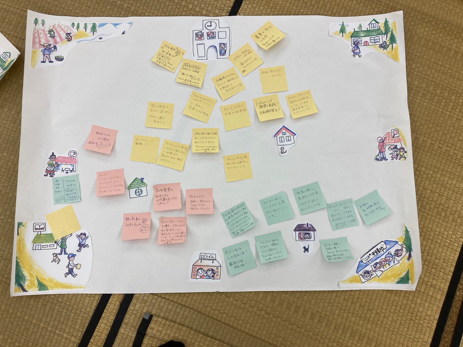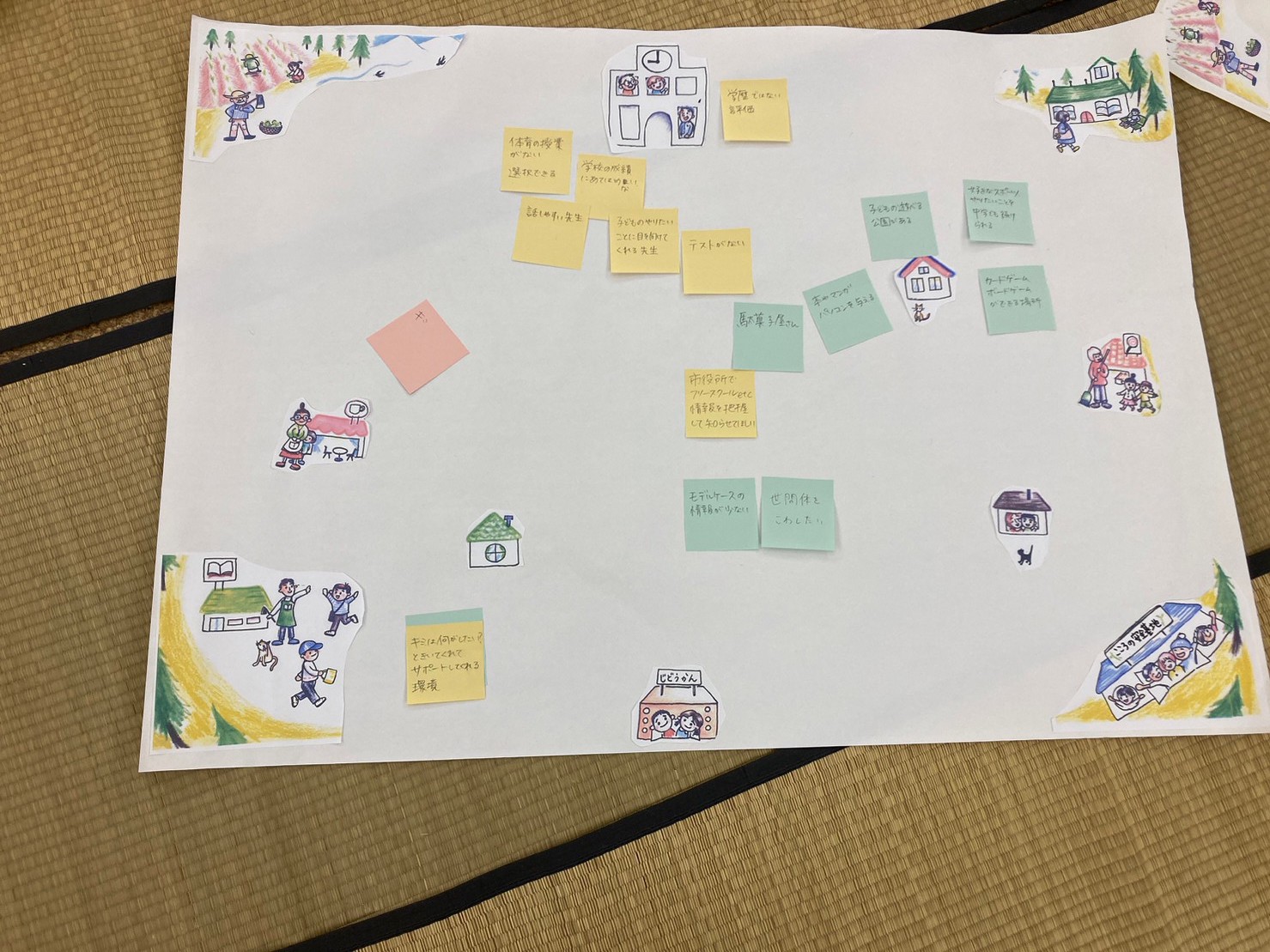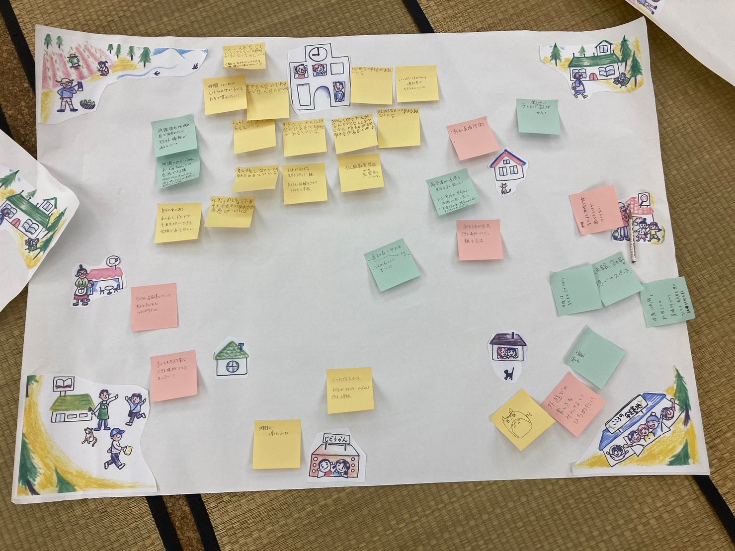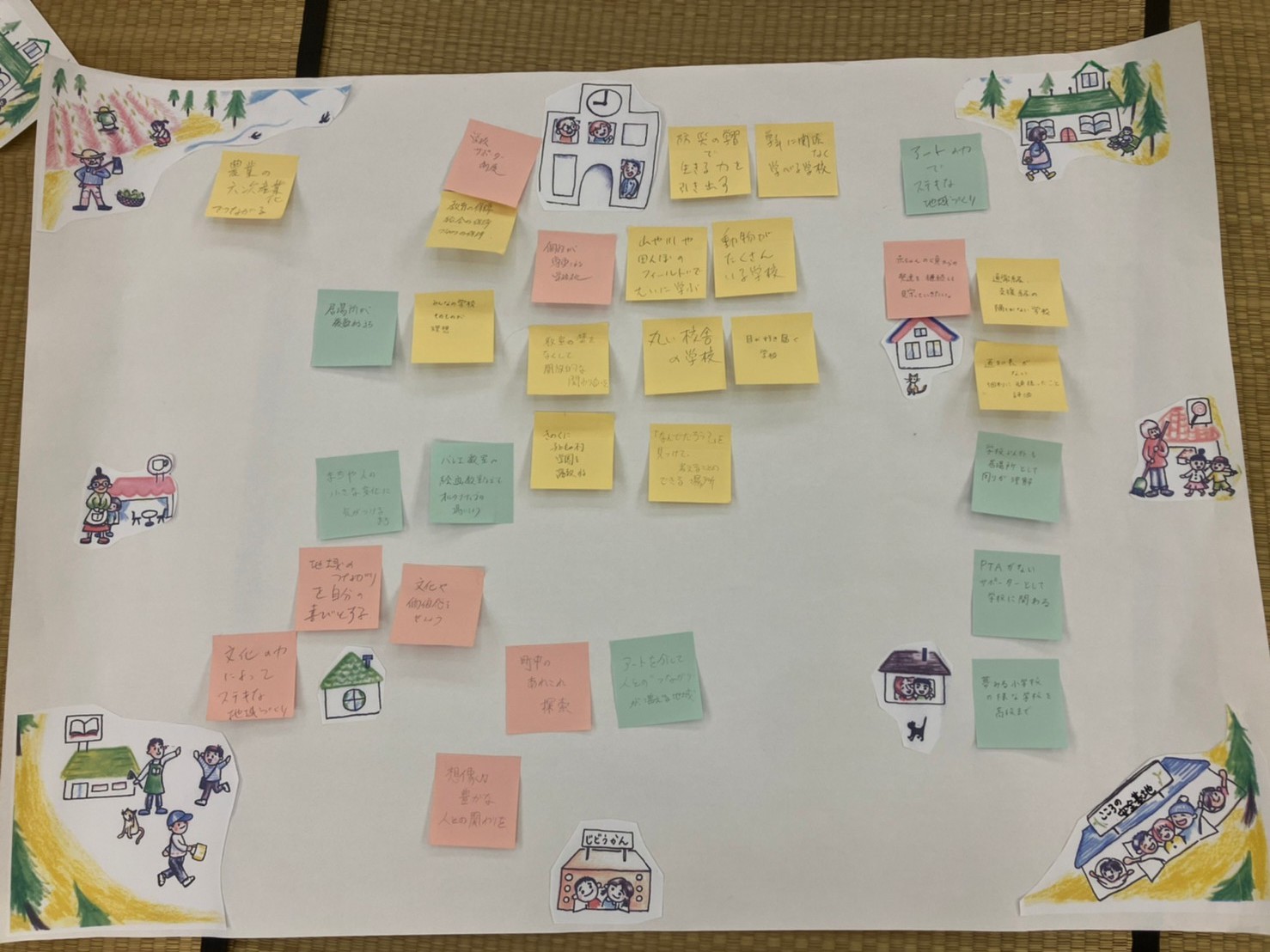 ↓皆さんが描いてくれた「夢みる地域」です。それぞれの立場でそれぞれの境遇で「今」私たちができることを考えることができました。