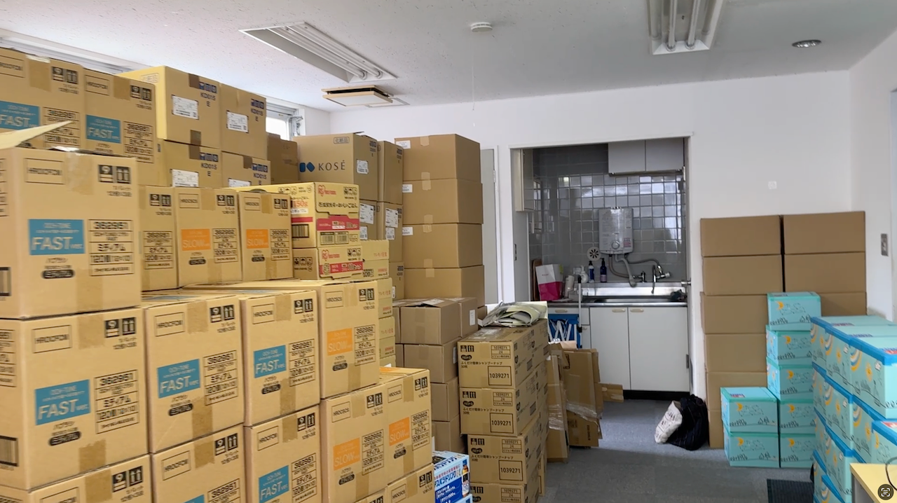 東京・築地にあるオフィスビルの一室で「付き添い生活応援パック」は作られています。中に入ると、今日発送される予定の段ボールが、出入り口近くに積み上げられていました。