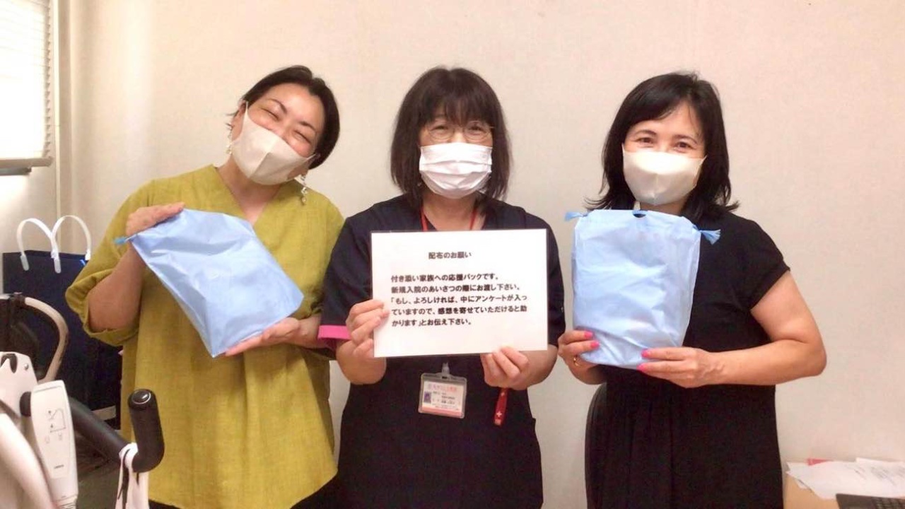 新生児の入院で産後まもないお母さん、メンタル面が不安定なお母さん、ごきょうだいも一緒に付き添っているご家庭、ひとり親世帯、生活保護を受けているご家庭などを優先してお渡ししています。思わぬプレゼントに、「気持ちが楽になりました」とのお言葉をいただきました。