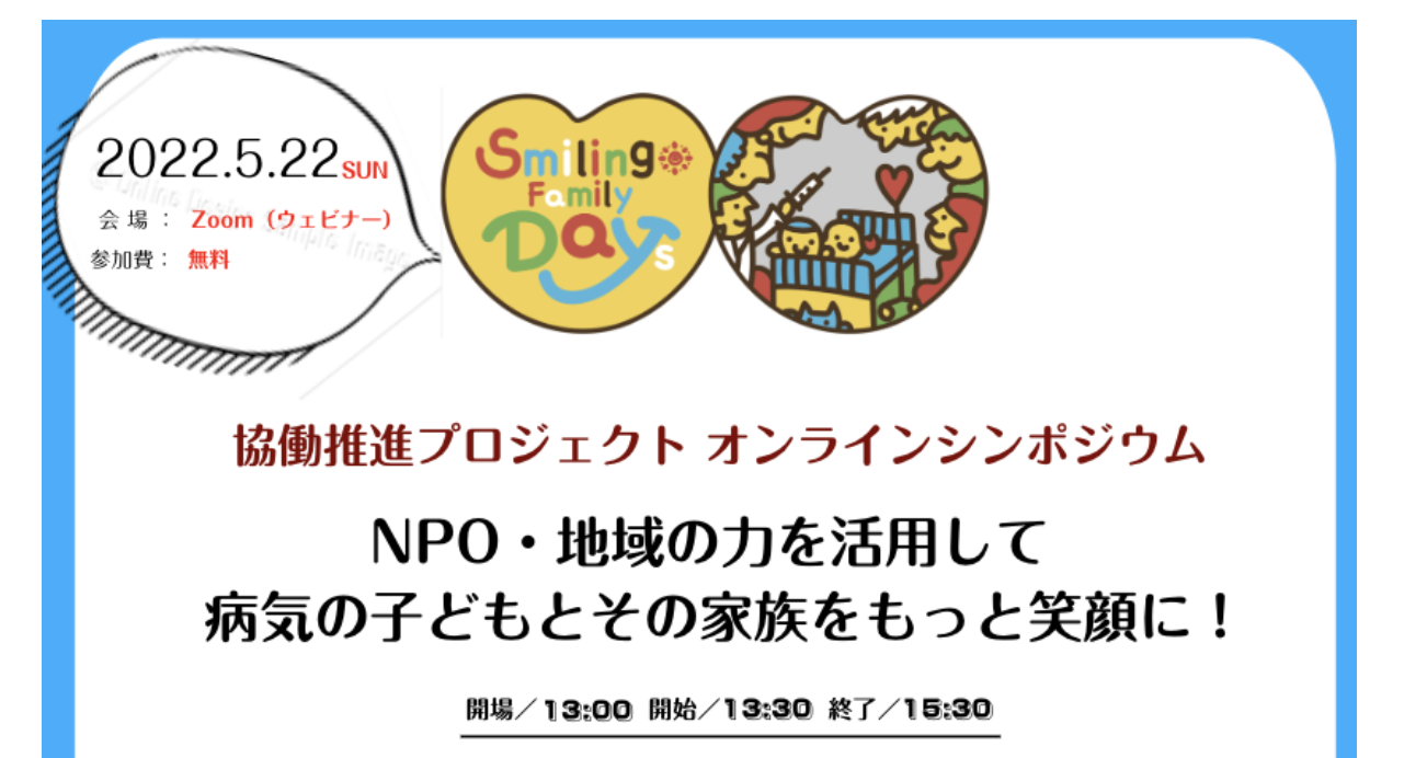 このクラウドファンディングは、病気の子どもを育てる家族の実情や小児病棟における付き添いの現状について、一般の人々にも広く知っていただき、社会課題として認識してもらうための啓発キャンペーン「Smiling Family Days~笑顔がつながる日。」の一環として行われています。