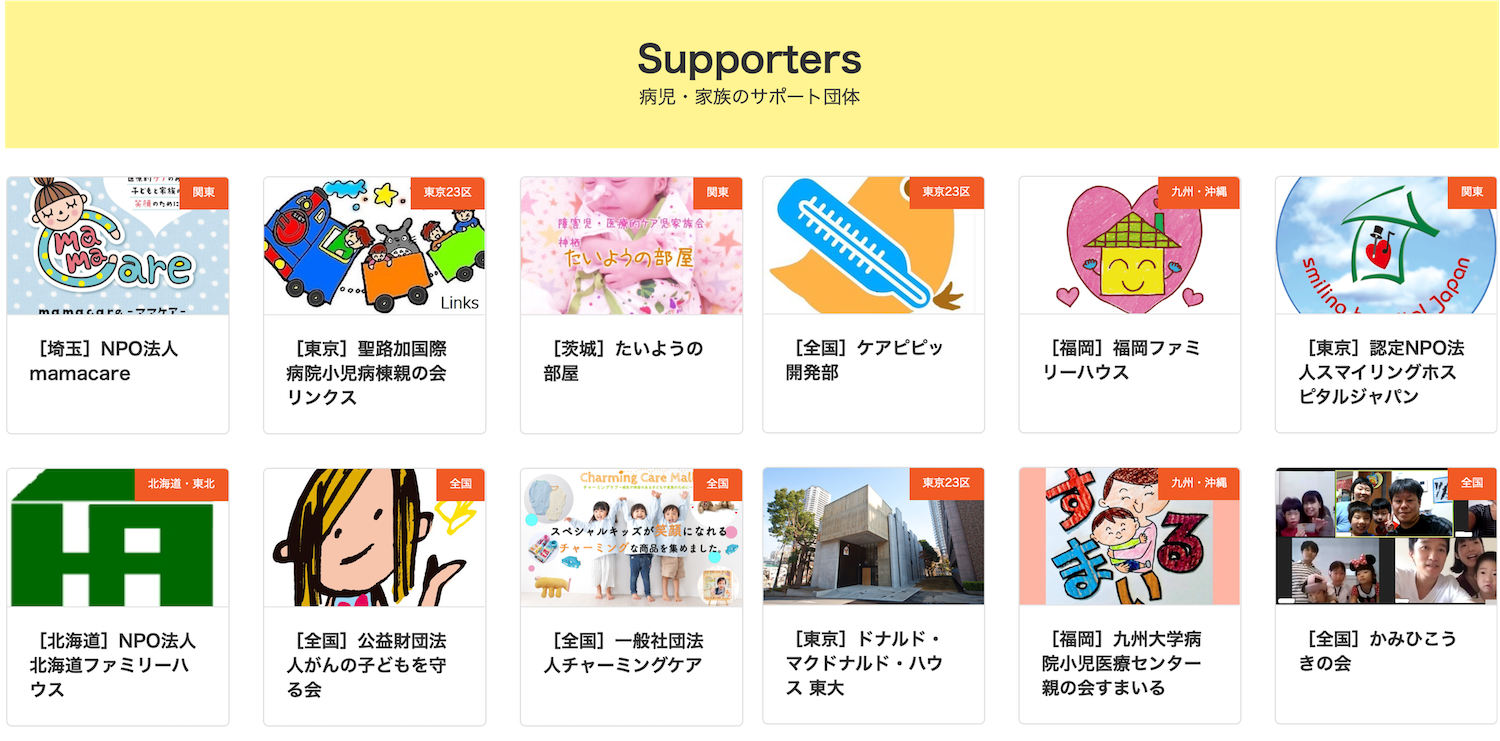 Supporters/病児・家族のサポート団体はこちら: