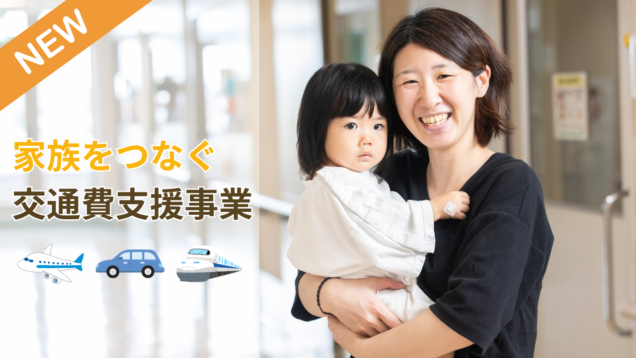 2026-04-02 12:30新事業「家族をつなぐ交通費支援」を開始しました遠方の病院で長期入院する子どもに付き添うご家族にとって、大きな負担となる「交通費」。その課題に応える新事業「家族をつなぐ交通費支援」を開始しました。新幹線や飛行機代などの交通費を年間5万円を上限に補助し、家族がつながり続けるための環境を支えます。2026-04-02 12:30新事業「家族をつなぐ交通費支援」を開始しました遠方の病院で長期入院する子どもに付き添うご家族にとって、大きな負担となる「交通費」。その課題に応える新事業「家族をつなぐ交通費支援」を開始しました。新幹線や飛行機代などの交通費を年間5万円を上限に補助し、家族がつながり続けるための環境を支えます。