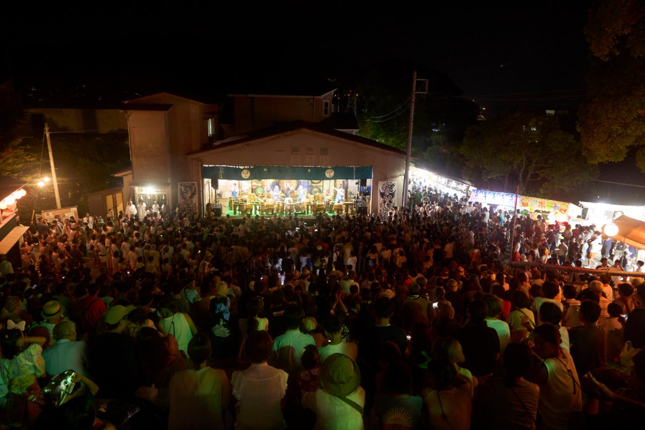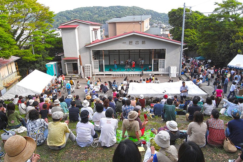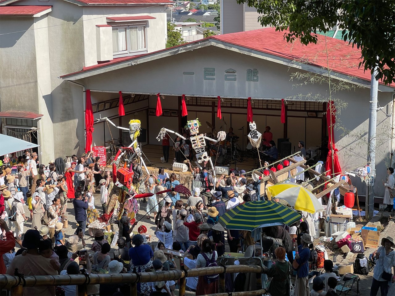 広く前面の扉を開放して舞台となる仕組みの一色会館は、例大祭の奉納演芸において活用されるだけでなく、各種イベントやライブなどでも利用されてきました。