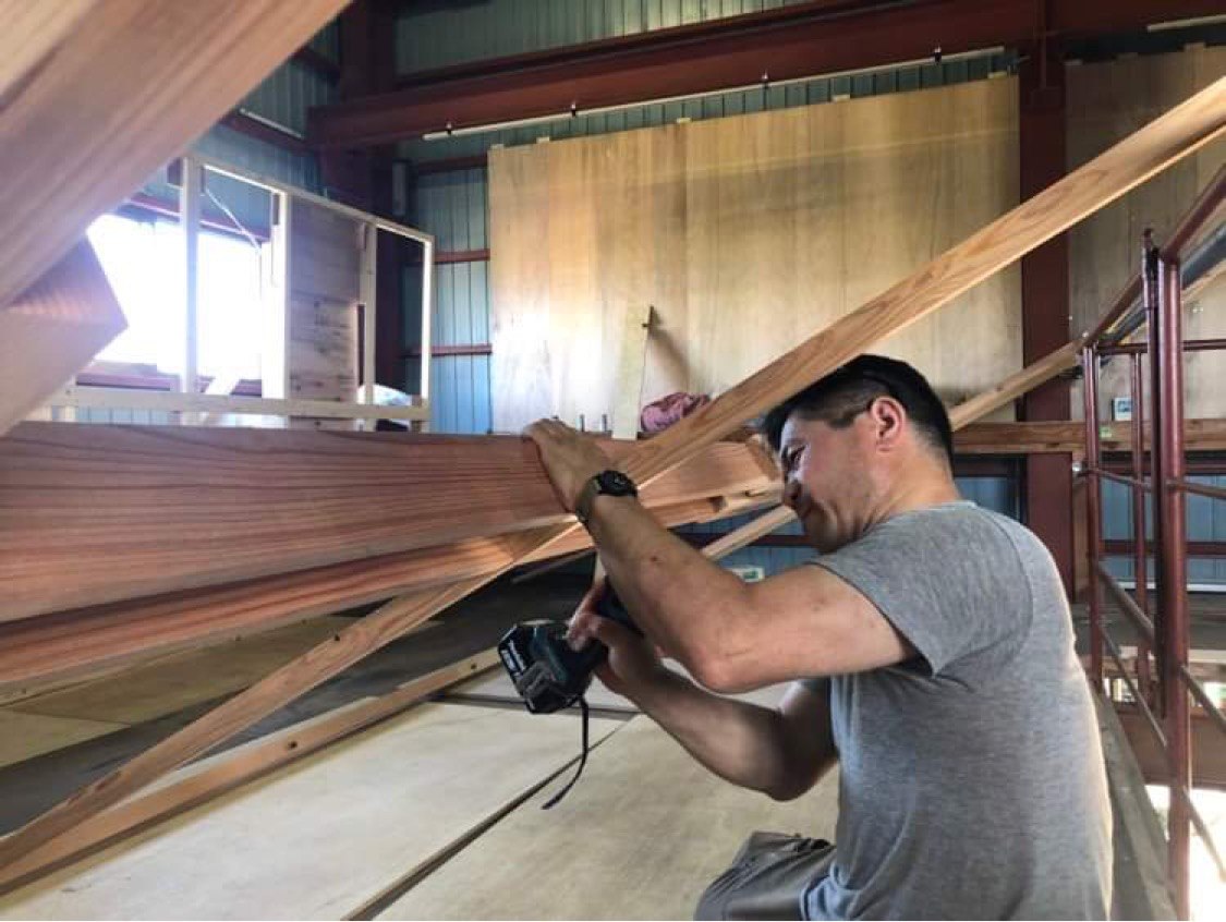 プロの職人の技を惜しみなく注ぎ込んでくださった増田さん。無事に天井画が据えられたあと、ホッとしたくしゃくしゃの笑顔が印象的でした。